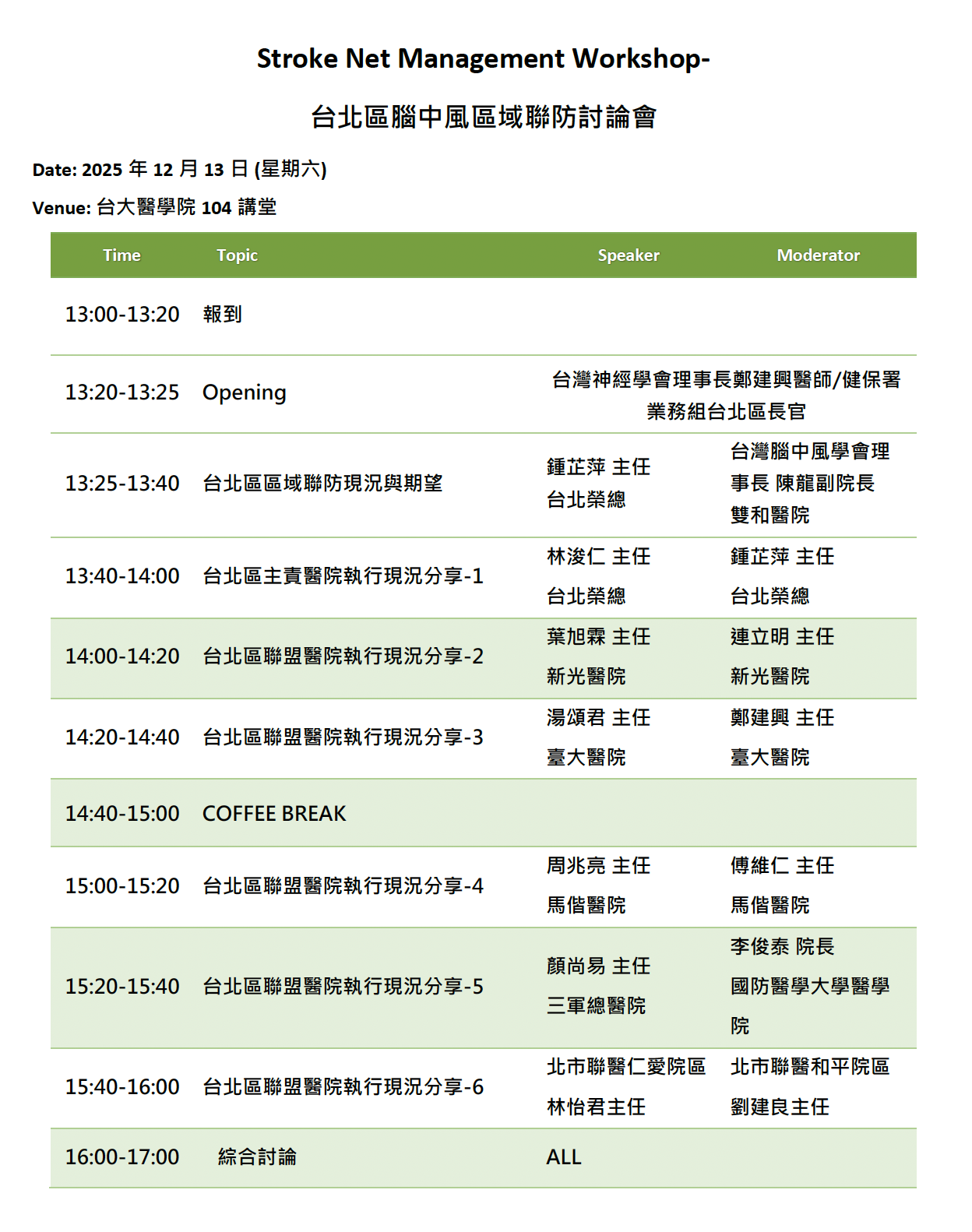 2025-12-13(六) 北區腦中風區域聯防討論會